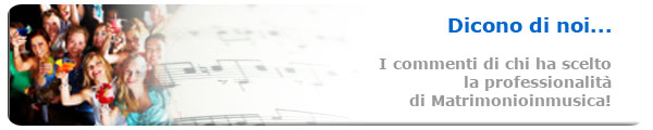 Quì di seguito i commenti di chi ha scelto gli Artisti di Matrimonioinmusica.it per il proprio Matrimonio o per qualsiasi altro tipo di festa.Attualmente sono presenti 632 commenti!